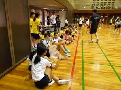 大阪市の小学生148名が参加し、阿倍野スポーツセンターでバドミントンの交歓会練習会が行われました。