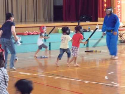 本日、午前1時〜午前2時30分、体育館で、はぐくみネット地域こども体験事業を実施します。大阪スポーツチャンバラ協会の講師の方による体験プログラム「スポーツチャンバラ」です。日本の伝統遊び「ちゃんばら」がスポーツになって復活しました。スポーツチャンバラにチャレンジしよう!