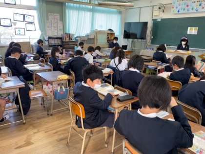 子どもたちが、それぞれお気に入りの本を読んでいます。