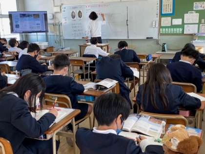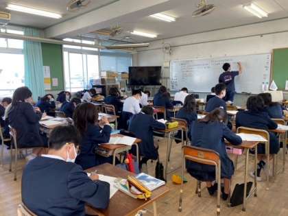 1組の理科は、新巽中学校の先生に教えてもらっています。