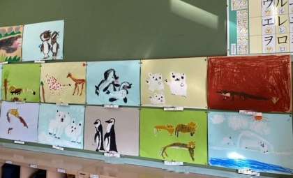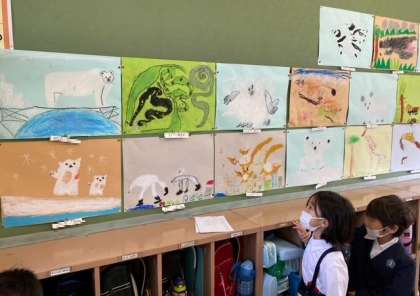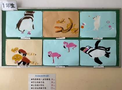 1年生の子どもたちが、「天王寺動物園」(遠足)で見た、いろいろな動物たちの絵を描きました。