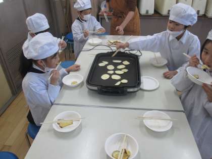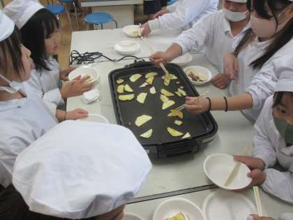 切ったサツマイモを焼いて出来上がり!!
