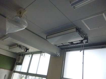 6月から足場を組み、夏休みになって本格的に、普通教室の空調工事(8月下旬まで)が行われています。随時、工事の様子をお知らせします。