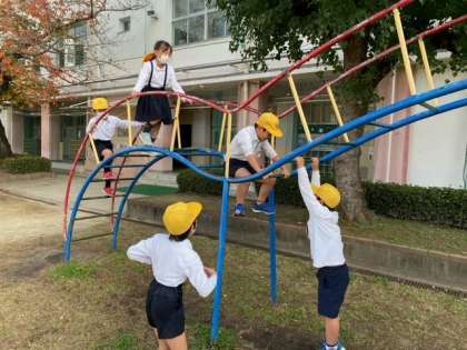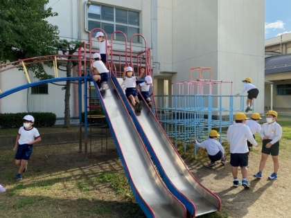 寒さを吹き飛ばすように、子どもたちが元気よく、すべり台などの遊具で遊んでいます。