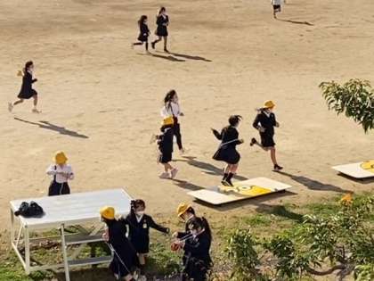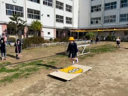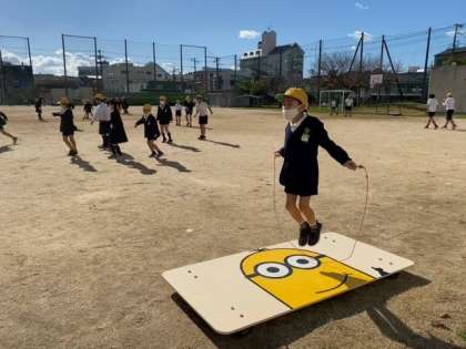 運動場に、なわとびの「ジャンピングボード」が登場しました。