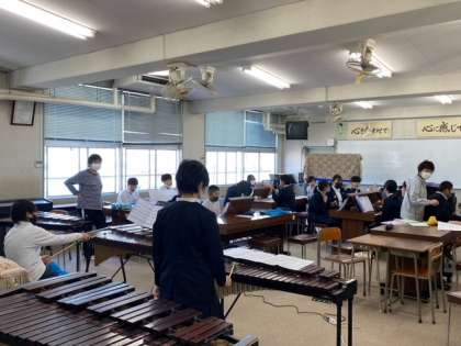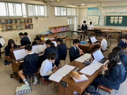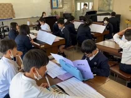 6年生の音楽科で、「風を切って」の合奏に取り組んでいます。