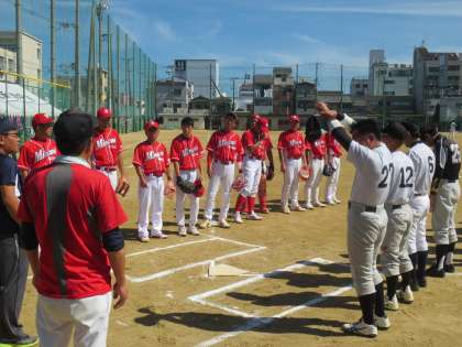 巽南小学校PTA男子ソフトボールは、5月の予選を勝ち抜き、本日決勝トーナメントに出場しました。9時開会式後の第1試合で、準々決勝の相手は、生野南小学校PTAでした。