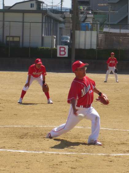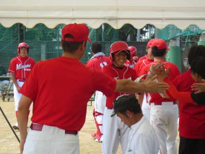グランドに立っているだけで汗が流れるほど、朝から暑さの厳しい日なりました。しかし、選手の皆さんはチーム一丸となって頑張っていました。点が入ったときは、応援席も大変盛り上がりました。