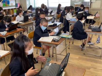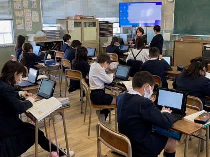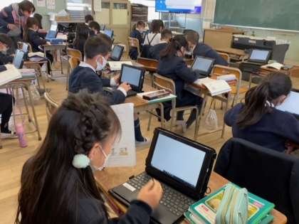 3年生の国語科では、タブレット端末を使って「ローマ字入力」の学習をしています。