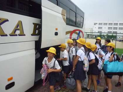 今日から、5年生は、2泊3日の林間学習に行きます。3日間は、次のめあてを持って活動します。(1)学校や家庭を離れ、自然の中で団体生活を楽しむ。(2)野外活動を通して、健全な心身を育てる。(3)ハチ高原の自然のようすを学習します。