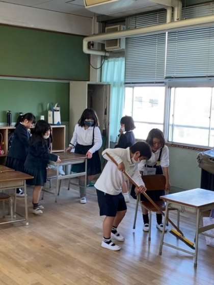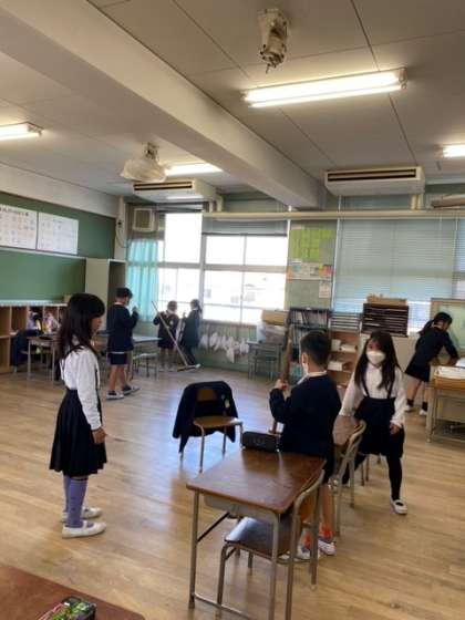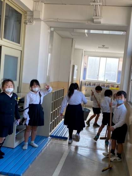 2年生の子どもたちも、教室や廊下の掃きそうじ・拭きそうじを丁寧にしていました。