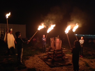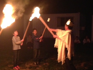 火の神から継がれた火によって、キャンプファイヤーが点火されました。「燃えろよ燃えろうよ、炎よ燃えろう〜」さぁ、始まりだ!炎が燃え上がるとともに、歌やゲーム、スタンス等、みんなで楽しく盛り上がっていきました。