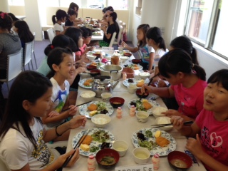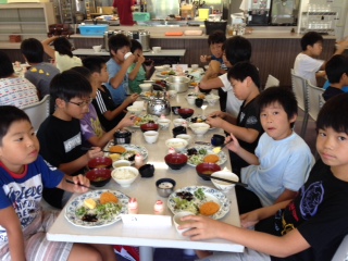 ラジオ体操が終わって、心も体もスッキリ目覚めました。2日目の朝食をおいしく食べることができました。