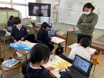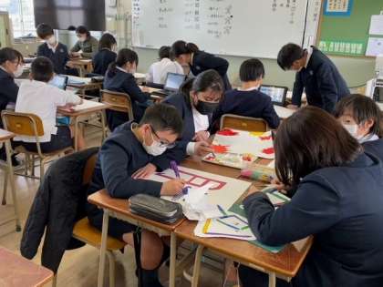 子どもたちが、豊かな想像力を駆使して6年生最後の絵画作品を作っています。
