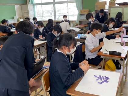 今年の漢字一字を決めて、その形を切り取り、模様をつけます。