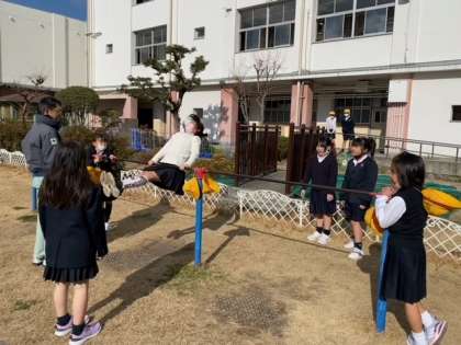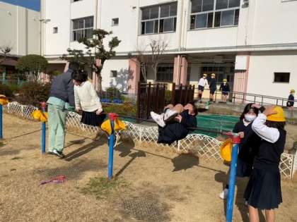鉄棒では、「校長先生、見て!」と 子どもたちが声をかけてくれます。