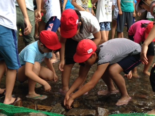 あっ!あそこに…。こっちに来た…。隅っこにも…。静かに、そして素早く!ヤッタ!やっと、やっと魚をつかまえることができました。