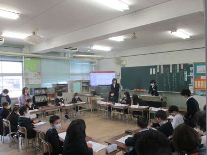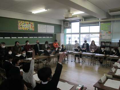 巽南小学校が今年研究している学級活動の研究授業が2年2組でありました。多くの先生が参観しましたが、自分の考えをすすんで発表することができました。