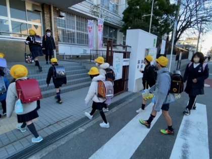 登校してくる児童の「おはようございます」の声が、心なしか小さく感じます。