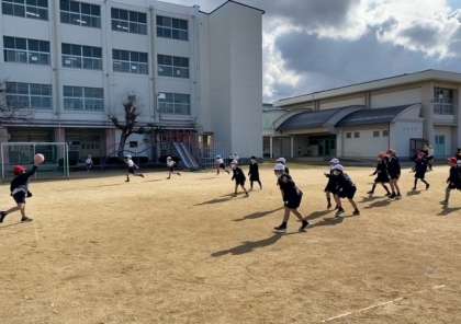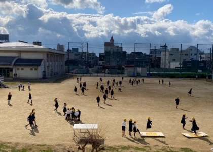 寒い中でも、子どもたちが楽しく元気に運動場で遊んでいます。