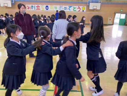 負けた人は勝った人に後ろにつくので、じゃんけんをするたびに列が長くなります。