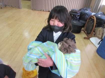 最後は赤ちゃんをだっこして大きさを実感し、赤ちゃんに言葉をかけていました。