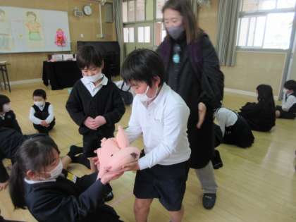 「しっかり食べておおきくなってね「重い・・・」と興味をもって学習できました。