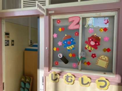 2月の事務室掲示も「節分バージョン」です。
