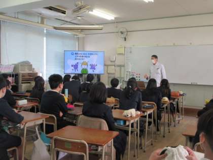 お薬の種類・飲み方など、わかりやすく実験をまじえてのお話しでした。兄弟であっても人のお薬は飲んではいけません、水で飲まないとこんなことが…食間に飲むっていつ?…など具体的な内容でした。