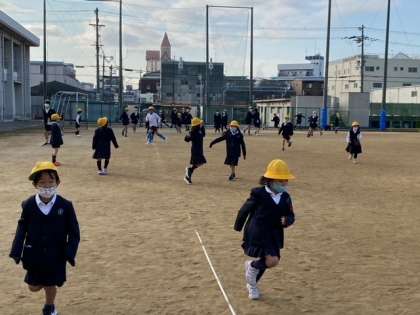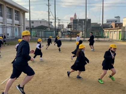 1年生の児童も6年生の児童も、運動場を走りまわって楽しんでいました。