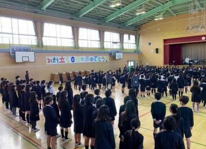 1〜5年生の児童が、明日の「卒業生を祝う会」に向けて最後の練習をしました。