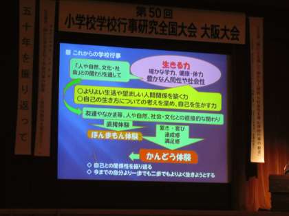 8/10・11の両日、大阪市中央公会堂とホテルアウィーナ大阪で、小学校学校行事研究全国大会が行われました。「関わりを通して豊かな人間性や社会性を育む学校行事の創造」をテーマに、全国より1000名以上の教育関係者が集まり研究大会が開催されました。