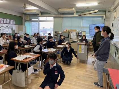 2組の外国語(英語)科では、子どもたちが、教科担任やC-NETの先生と一緒にクイズをして楽しんでいました。