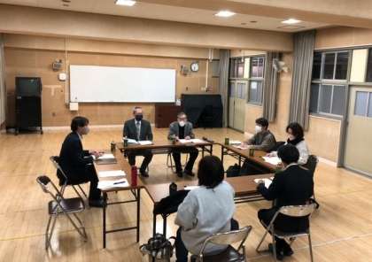 会長あいさつに続き、学校より「運営に関する計画年度末評価(含学校アンケート結果考察)」、「全国体力・運動能力運動習慣等調査」について、学校の取り組みや児童の実態をお話し、ご理解いただきました。