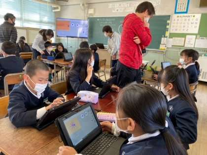 プログラミングソフト(ビスケット)を用いて「自分だけのもよう」づくりに取り組みました。