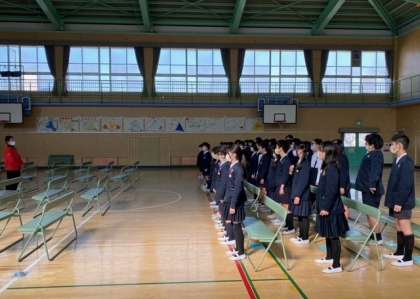 座席の確認や6年生と行う呼びかけの練習をしました。