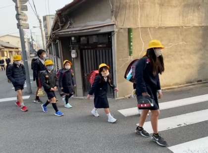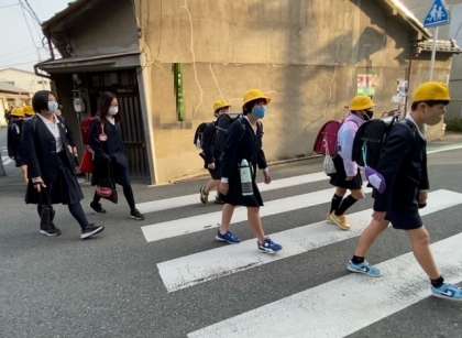 今日から、新班長を先頭(6年生は最後尾)に登校します。