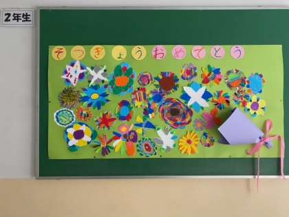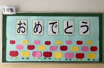 各学年の掲示板は、「おめでとう」でいっぱいです。