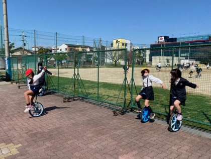 高学年や中学年の児童が、カッコよく一輪車を乗りこなしていました。