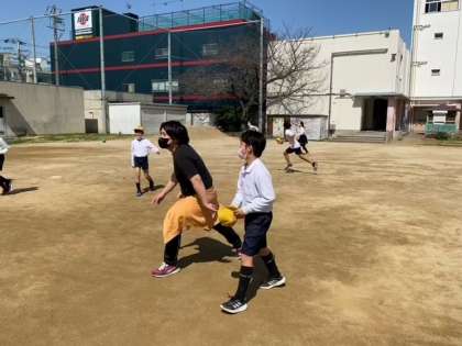 (校長先生も鬼ごっこに入らせてもらいました。)