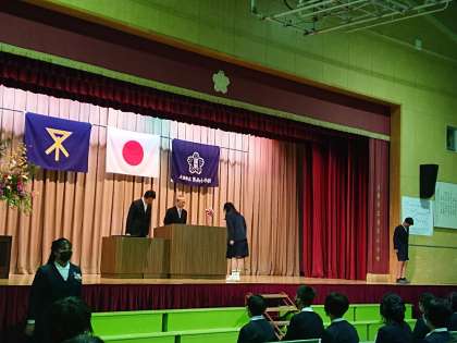 厳粛な雰囲気の中での授与風景です。