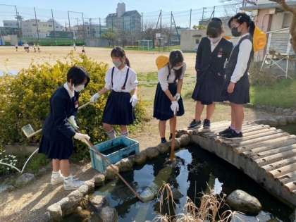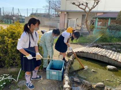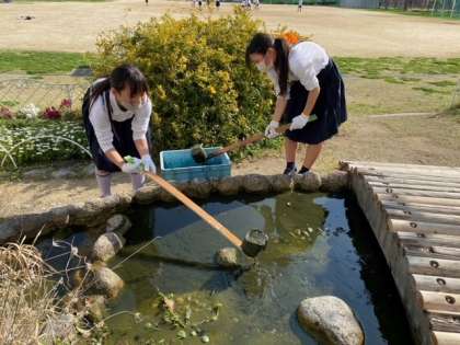 5年生の数名の児童が、レインボーパークの池をきれいにしてくれました。