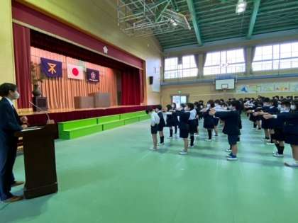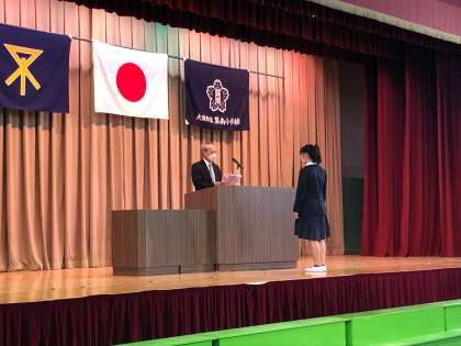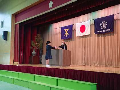 はじめに、校長先生から5年生代表児童に「修了証」が渡されました。