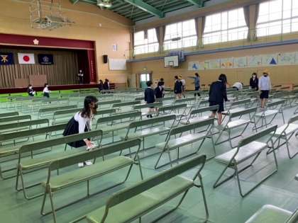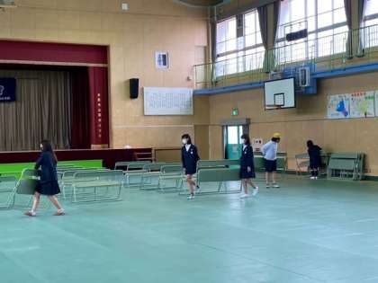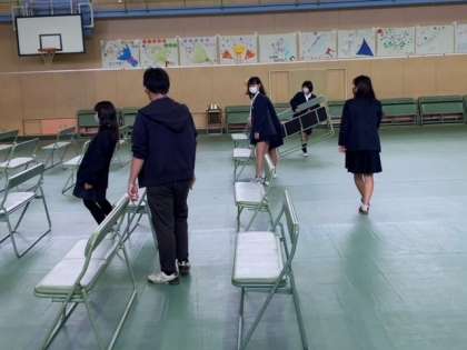 式場やその周辺の清掃を、教職員とともに、新6年生の児童が手伝ってくれました。