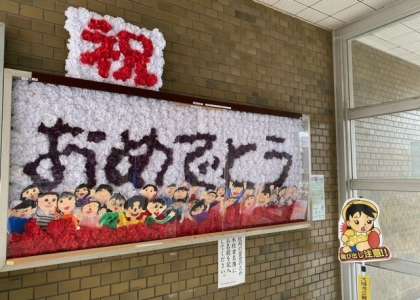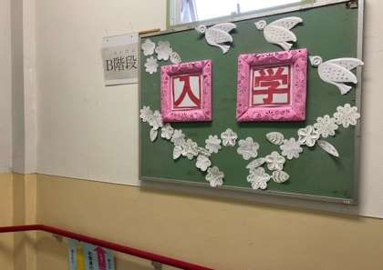 校庭の桜もまだ咲き続けています。1年生の入学をお祝いしています。