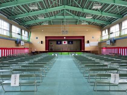しんにゅうせいの みなさん あすは にゅうがくしき です。 あした みなさんに あえるのを たのしみに まっています。(こうちょうせんせい より)