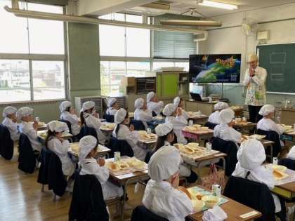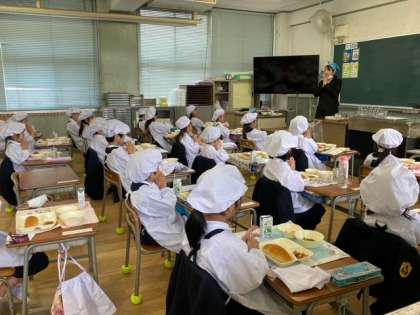 今日は、6年生と先生たちが、食器を運んだり配膳を手伝ってくれました。