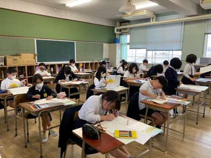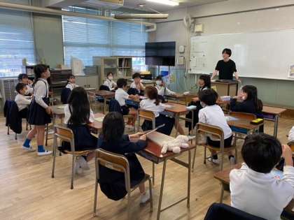 1組の国語科では、詩の「春の子ども」をていねいに視写していました。