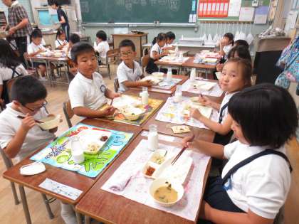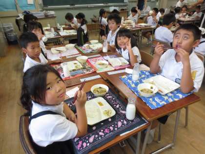 2組の給食の様子です。たこの煮物も大好きだと言っていました。