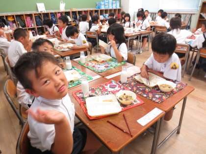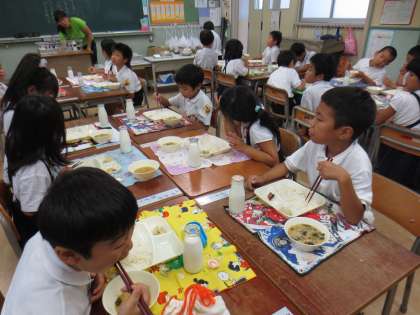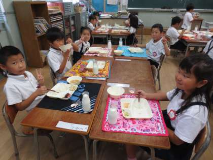 1組の給食の様子です。みそ汁や切り干しだいこんも大好きだそうです。